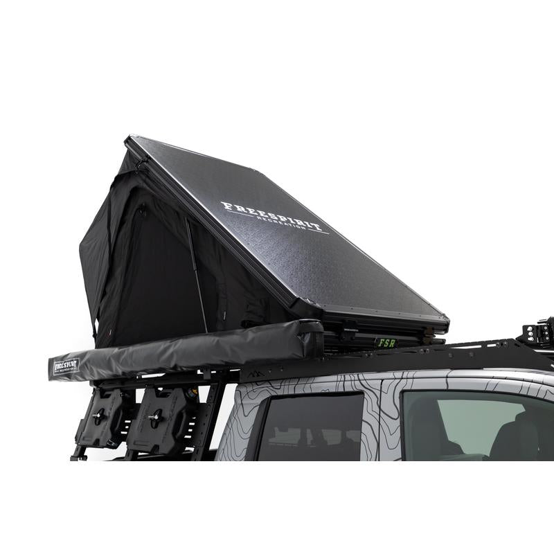 Its premium Freespirit Recreation Tri-Layer insulating fabric ensures comfort across four seasons and keeps you cooler in the summer and warmer in the winter. It's also highly customizable with the option to fit FSR crossbars and awning brackets directly on the top or sides of the tent.